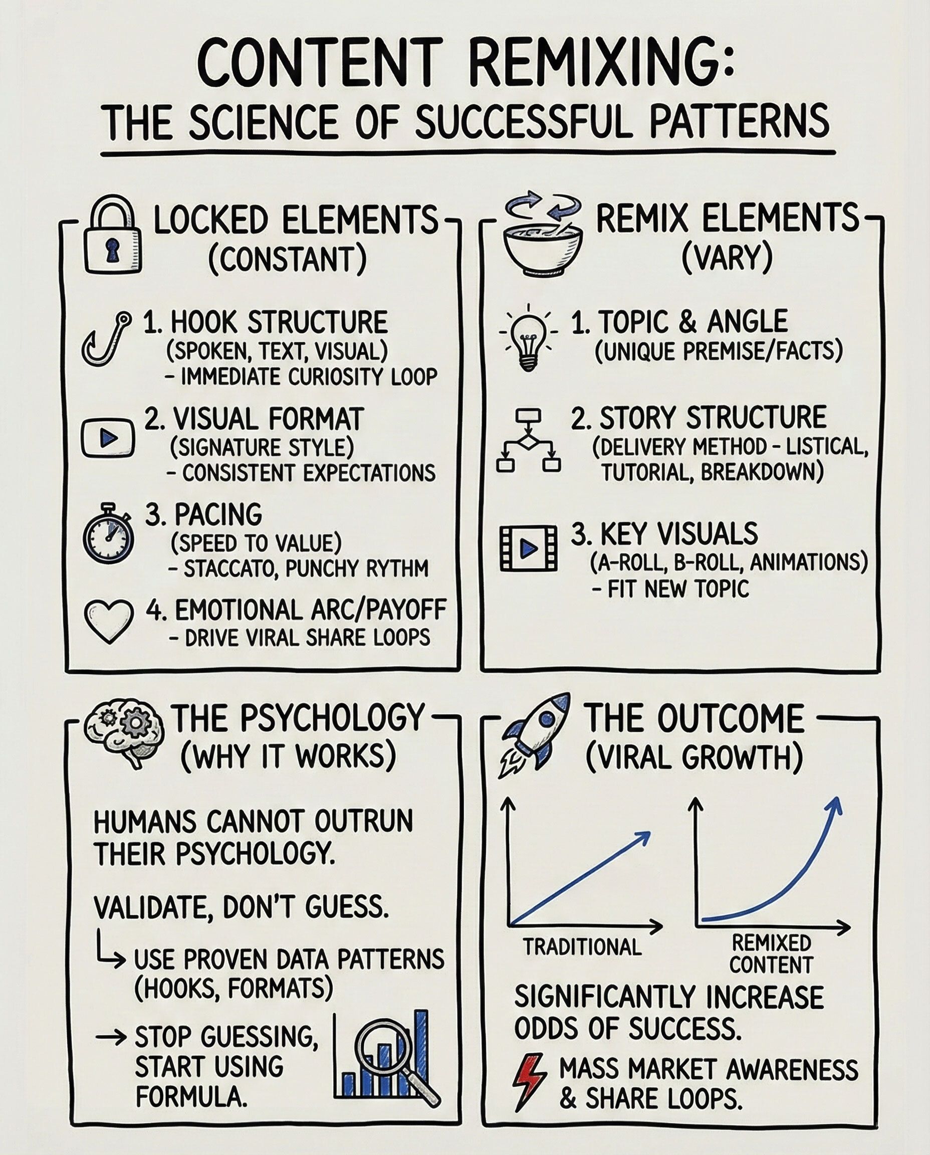 The goal isn't to copy viral videos. It's to hold the winning components constant and remix the rest.