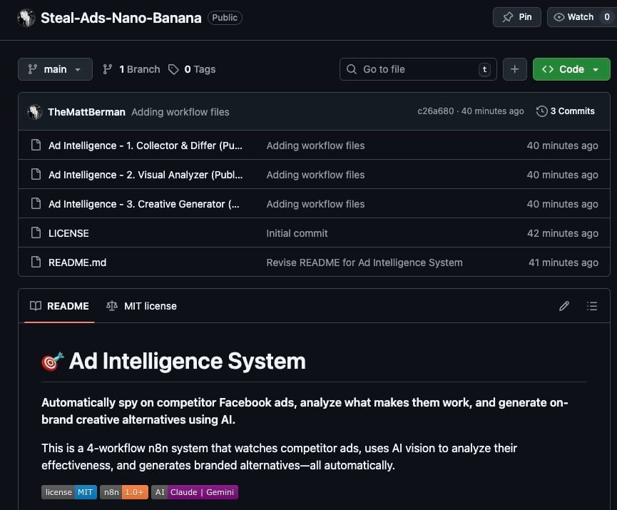 You're about to get the complete 3-part automation I just built for my clients. The actual workflow files. Import them today, generate ads in an hour.